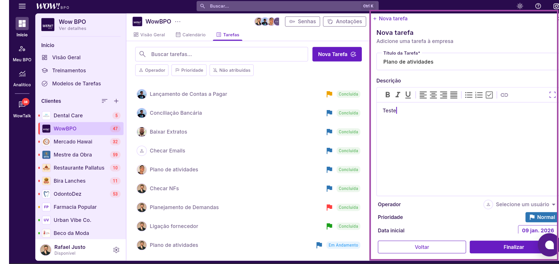 O cadastro das tarefas é um dos passos mais fundamentais para garantir que os processos de BPO financeiro sejam realizados de forma eficiente e sem falhas. Ao manter todas as tarefas bem organizadas, você cria uma estrutura sólida que facilita o controle, a execução e o acompanhamento das atividades, resultando em uma gestão financeira mais ágil e precisa.