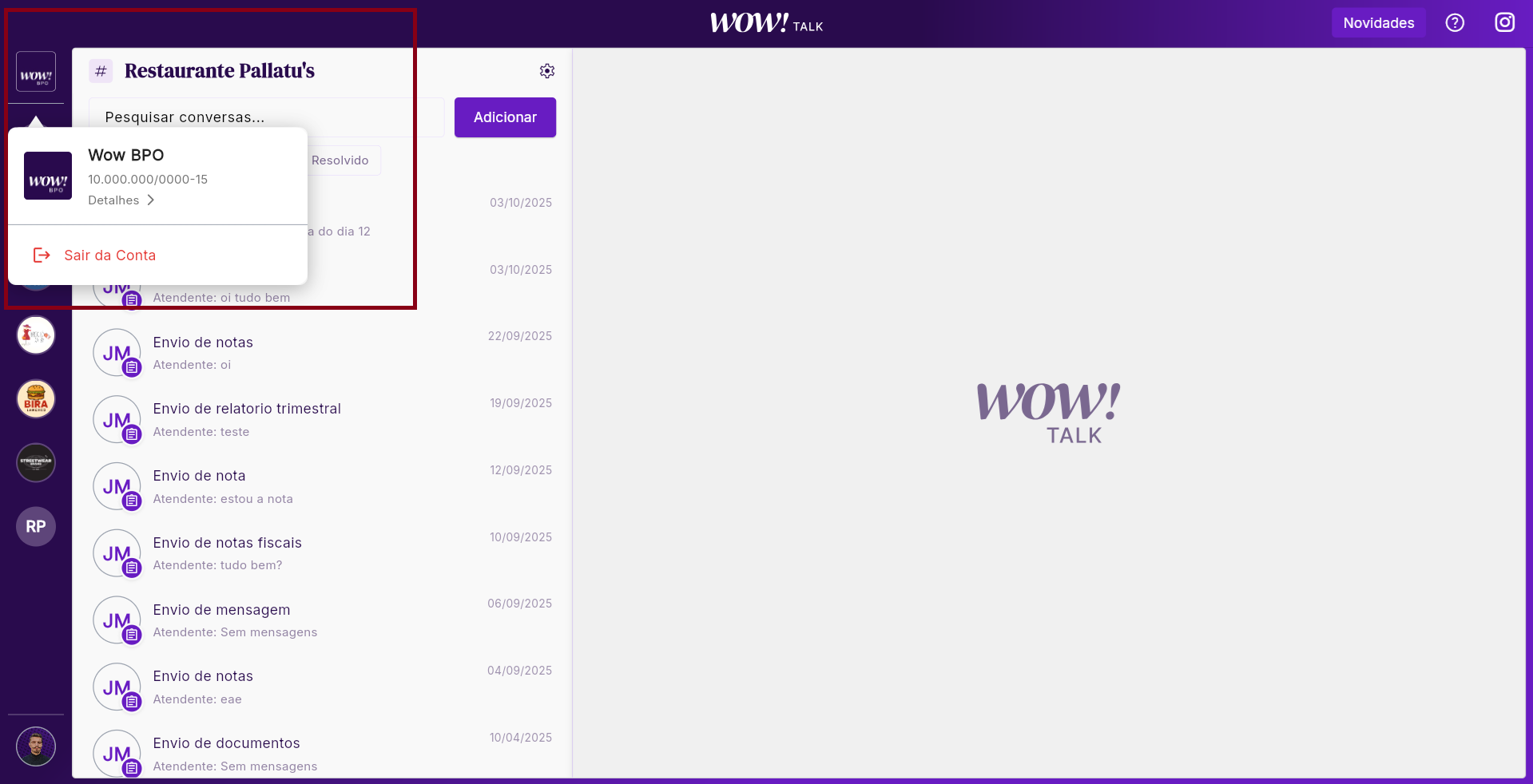 O WowTalk foi desenvolvido com o objetivo de centralizar e otimizar a comunicação entre você e seus clientes no contexto do planejamento de BPO Financeiro. Ao proporcionar um ambiente integrado e eficiente, o WowTalk visa fortalecer o relacionamento entre a empresa e seus clientes, garantindo a entrega de um serviço de alta qualidade e promovendo uma experiência superior para ambas as partes.,ent