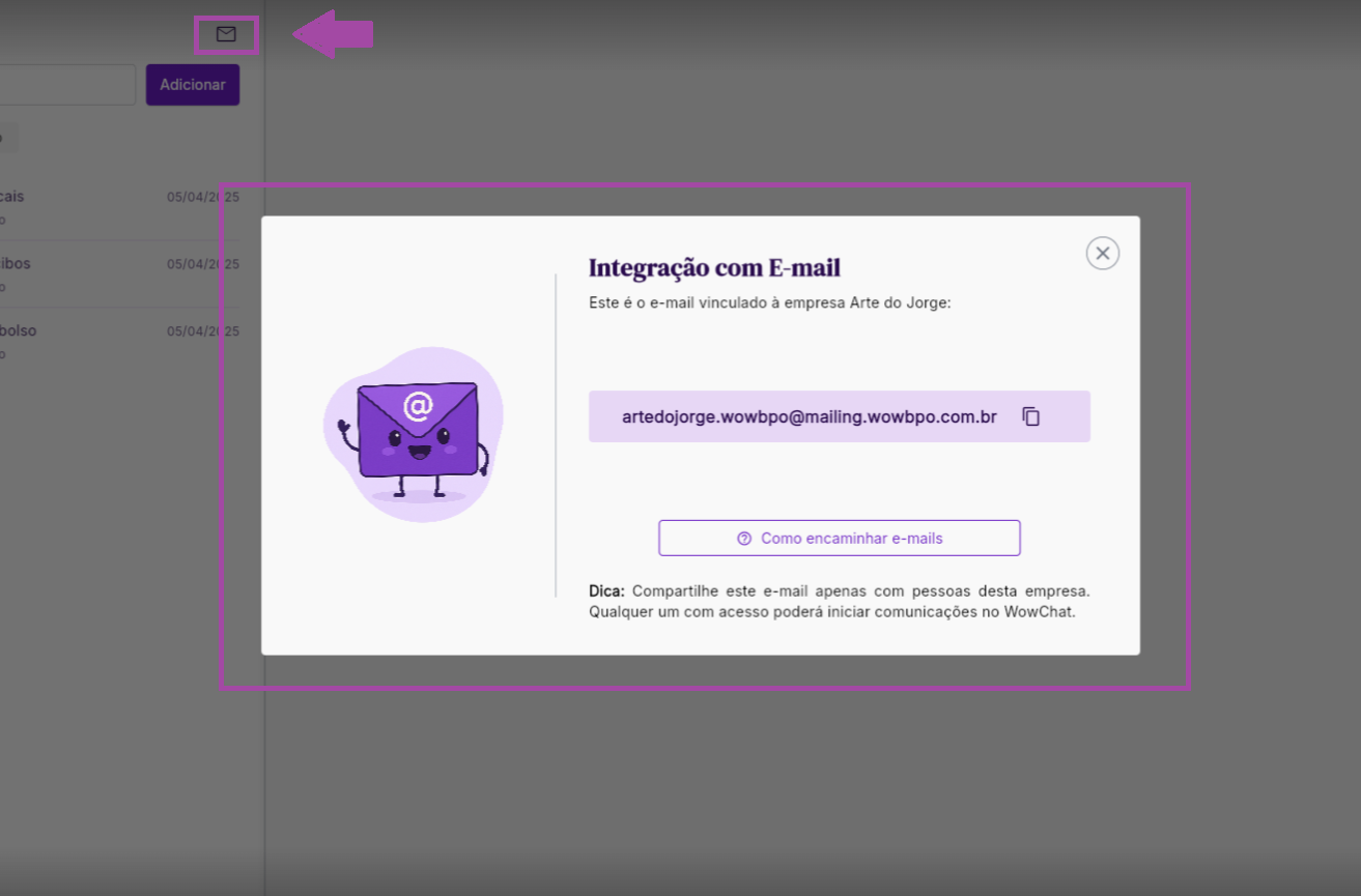 Prontinho! Todos seus e-mails cairão diretamente na WowChat!📢